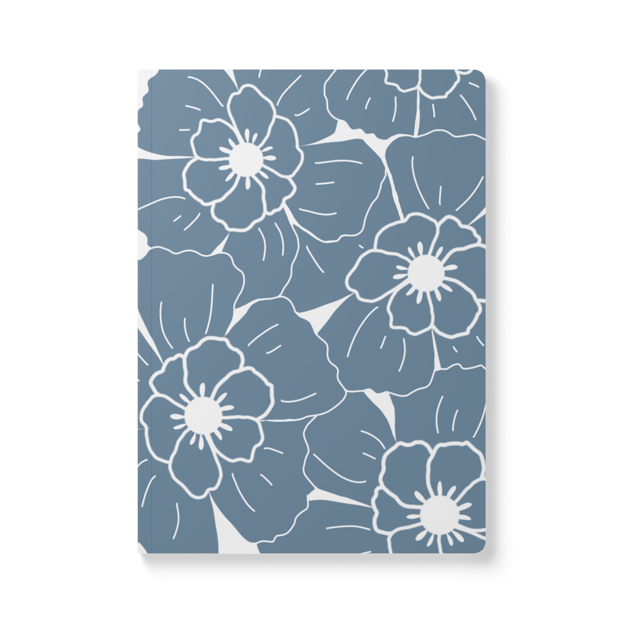 Blue Blossom softcover journal with lined pages, trendy and fun design. Perfect for jotting down thoughts, notes, and doodles. Ideal for journaling, or daily planning at home or in the office. Great gift for students, writers and anyone who loves to stay organized.